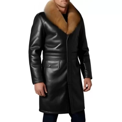Trois quart homme en cuir d'agneau noir col en renard naturel véritable amovible fermeture par boutons modèle Richardy