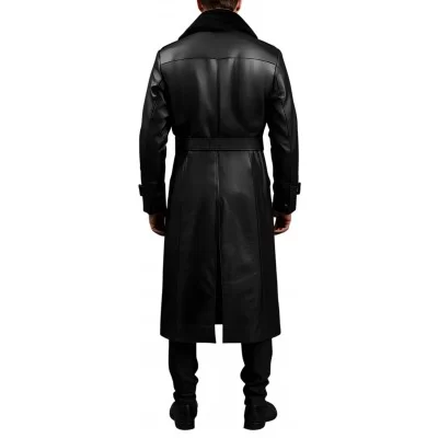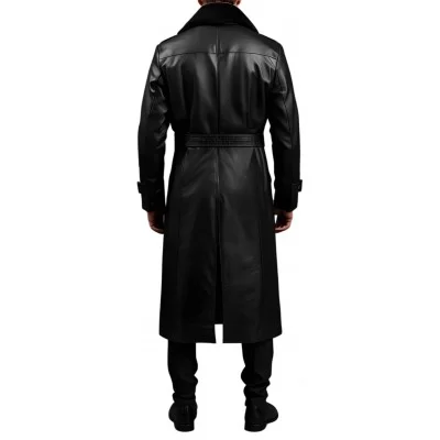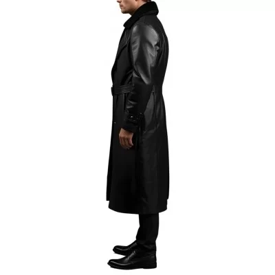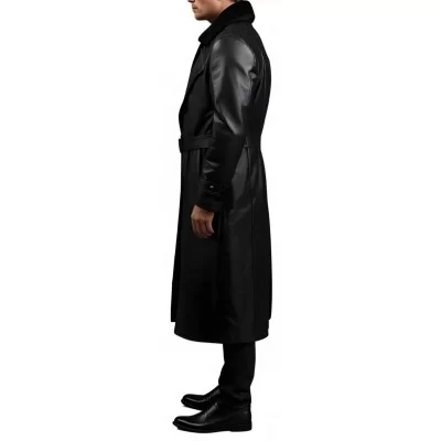 Manteau 7/8em fashion en cuir d'agneau noir fermé par boutons style militaire, col en mouton véritable amovible, ceinture en cuir avec boucle métal. Ce manteau est fabriqué en cuir d'agneau fleur corrigé cuir haut de gamme. Doublure satin. Nous vous conseillons de choisir l'option sur mesure offerte pour avoir un vêtement éxactement adapté à vos mensurations.