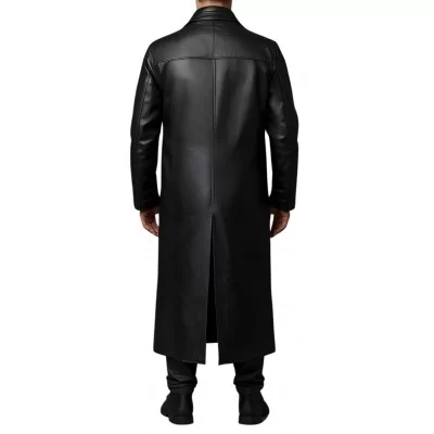 Manteau maxi en cuir homme agneau noir fermeture par boutons modèle Manita