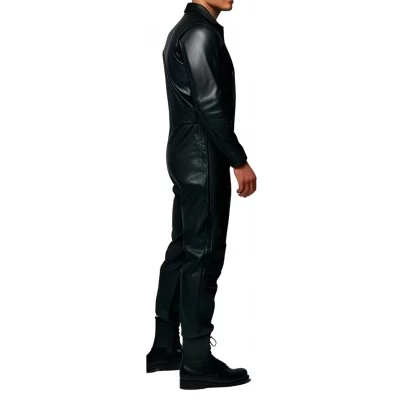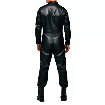 COMBINAISON HOMME EN CUIR D'AGNEAU NOIR MODELE STYLE ARMEE MODELE ARMATY