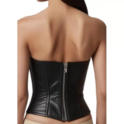 Bustier en cuir d'agneau noir zip arrière et rivets ronds en métal argent modèle Rocka