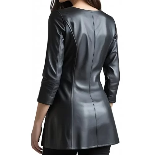 Tunique en cuir d'agneau noir semi-aniline cuir haut de gamme manches deux tiers. Vous pouvez sans supplément avoir cette tunique dans d'autres longueurs avec des changements option personnalisation. Doublure satin. Optez pour la fabrication sur mesure pour cette tunique afin de l'avoir éxactement à vos mensurations option offerte.
