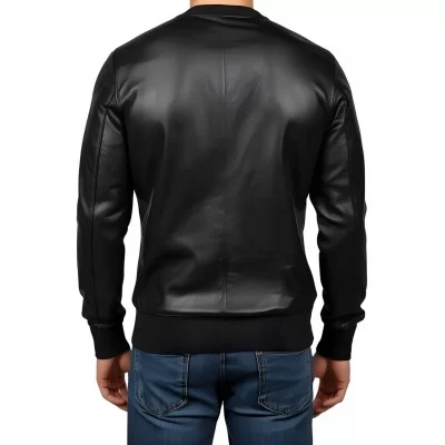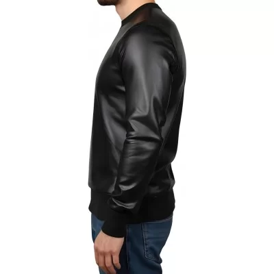 Sweat shirt homme manches longues en cuir d'agneau noir modèle Robert
