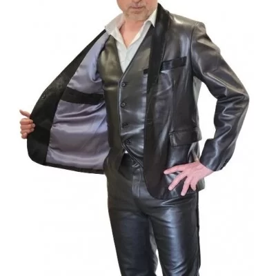 Superbe Gilet très mode en cuir d'agneau plongé noir cuir très haut de gamme. Gilet avant et arrière en cuir, fermeture par boutons. Vous pouvez sans supplément avoir ce gilet dans d'autres longueurs ou avec des changements option personnalisation offerte. Doublure satin.