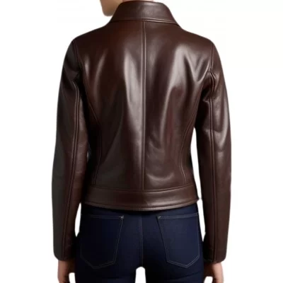Blouson femme perfecto en cuir d'agneau marron chocolat modèle Frizzia