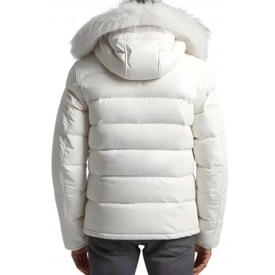 Doudoune homme en cuir blanc avec sa capuche avec bords renard blanc. Vous aimerez son look intemporel et fashion. N'hésitez pas à user d'imagination et choisissez une couleur différente en agneau classique et cela sans supplément. Cette doudoune est confectionné en cuir ovin agneau fleur corrigé semi-aniline. Cette doudoune est doublée en molleton épais mais vous pouvez l'avoir en garnissage de duvet d'oie ou canard nous demander.