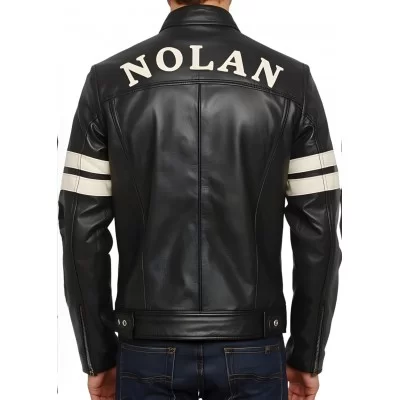 Blouson personnalisable prénom homme en cuir d'agneau bicolore noir et blanc modèle Initial