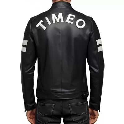 Blouson personnalisable prénom homme en cuir d'agneau bicolore noir et blanc modèle Nomy