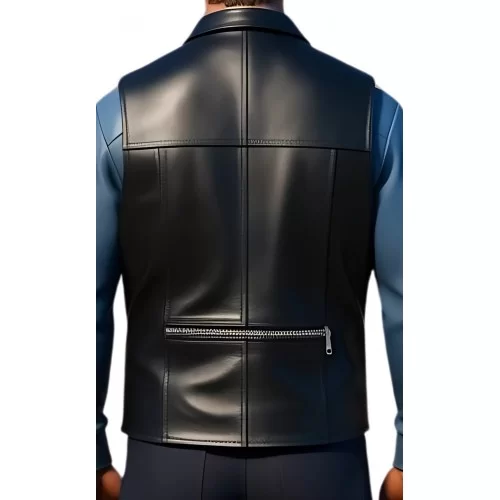 Gilet cuir homme type reporteur en vachette lisse noir cuir avant et arrière modèle Pirate