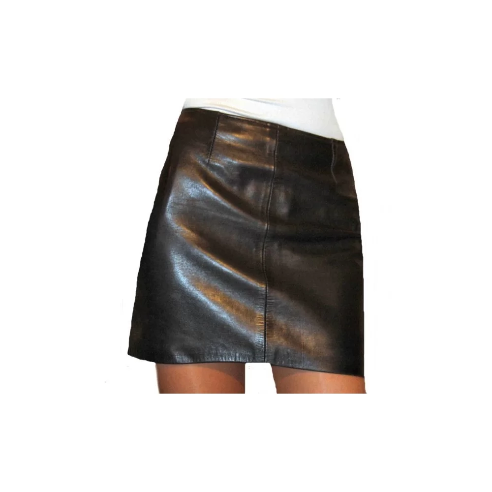 Jupe courte en agneau pleine fleur plongé cuir noir très haut de gamme. Doublure satin. Nous vous conseillons pour avoir une jupe bien ajustée éxactement à votre taille de choisir l'option sur mesure offerte.