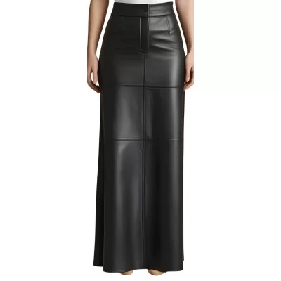 Jupe longue en cuir d'agneau noir modèle Charlie