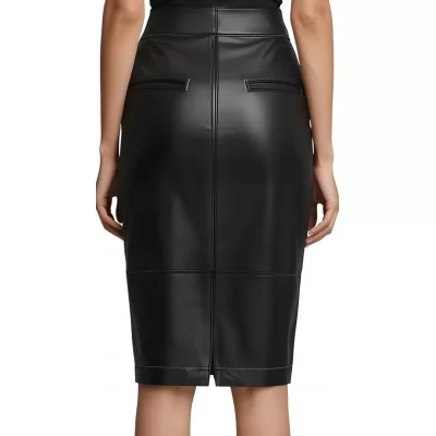 Jupe fuseau longue en cuir d'agneau noir avec bandes en cuir d'agneau impression crocodile modèle Hilyza