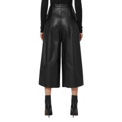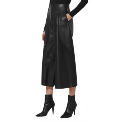 Jupe culotte longue en cuir d'agneau noir modèle Jisléne