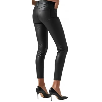 Pantalon jeans femme en cuir d'agneau stretch noir modèle Prismy