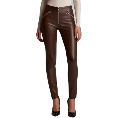Pantalon en cuir d'agneau stretch marron modèle Astra