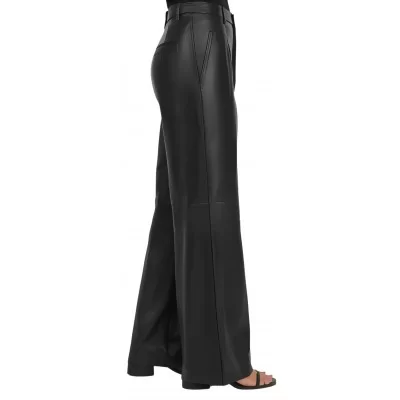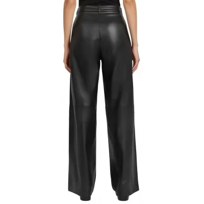 Pantalon femme oversize en cuir d'agneau noir modèle Oralie