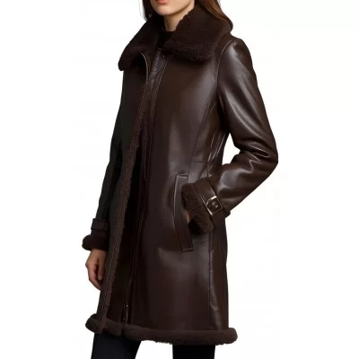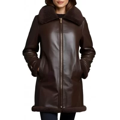 Veste trois quart en mouton retourné finition huilé marron façon cuir poils courts á l'intérieur cuir haut de gamme (mouton lainée). Vous pouvez sans supplément avoir cette peau lainée dans d'autres longueurs avec des changements option personnalisation. Optez pour la fabrication sur mesure pour ce mouton retourné afin de l'avoir éxactement à vos mensurations option offerte. Cette veste existe dans toutes les tailles sur simple demande.