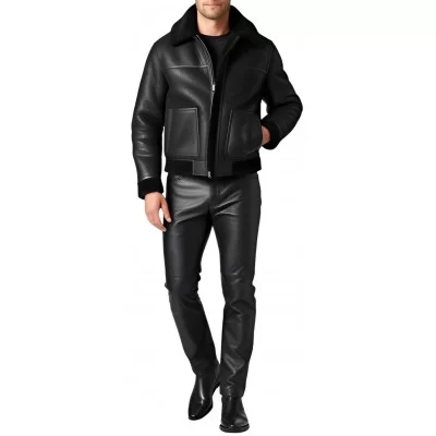 Blouson homme en peau retourné extèrieur huilé façon cuir. Cuir ovin mouton fleur corrigée semi-aniline extèrieur finition façon cuir, poils courts intèrieur, cuir haut de gamme (mouton lainée). Vous pouvez sans supplément avoir ce blouson en peau lainée dans d'autres longueurs nous consulter. Possibilité d'avoir cette peau lainée en finition façon daim sans supplément de prix.