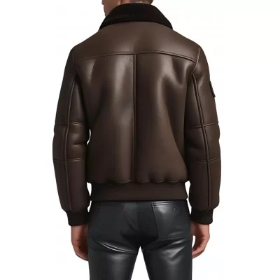 Blouson en mouton retourné extèrieur mouton huilé aspect cuir marron modèle Noé