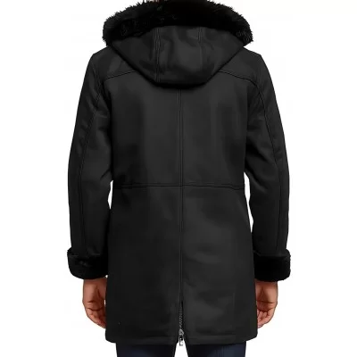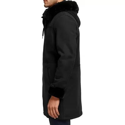 Trois quart en peau lainée mouton retourné noir façon daim velours avec capuche modèle Kome