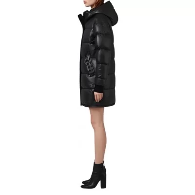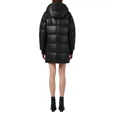 Doudoune trois quart femme en cuir d'agneau plongé avec capuche modèle Azerrale
