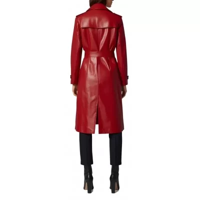 Trench manteau femme en d'agneau rouge double boutonnage et ceinture amovible modèle Anikalie