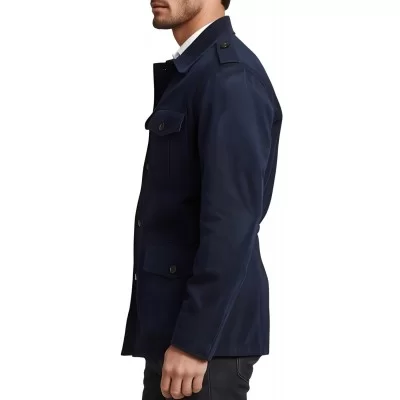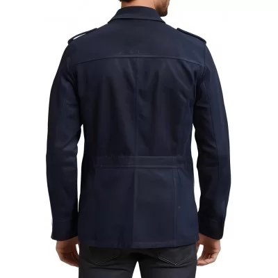 Veste de combat saharienne en peau d'agneau velours homme couleur bleu marine modèle Hérony
