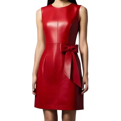 Superbe robe en cuir d'agneau modèle fashion avec noeud en cuir d'agneau agneau rouge sur le coté. Vous aimerez la qualité du cuir en fleur corrigée semi-aniline haut de gamme. Nous vous conseillons pour avoir une robe bien ajustée éxactement à votre taille de choisir l'option sur mesure offerte.