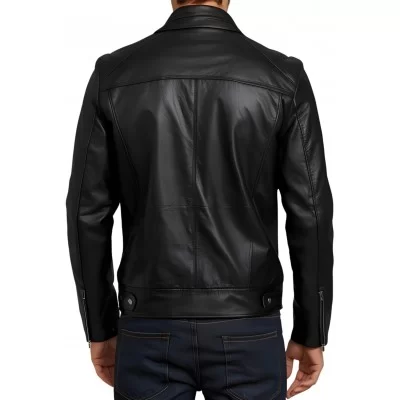 Blouson homme classique en cuir d'agneau noir modèle Hironi