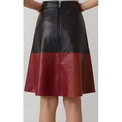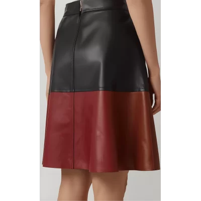 Jupe mi longue légèrement évasée en cuir d'agneau bicolore noir et marron modèle Ninia