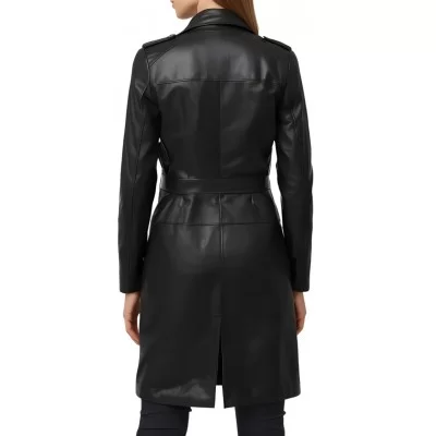 Trois quart en cuir d'agneau noir fermeture par boutons modèle Aléissia