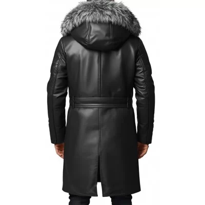 Trois quart homme peau lainée extèrieur en mouton retourné façon cuir huilé intèrieur mouton noir avec capuche modèle Lucas