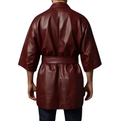 Kimono homme en cuir d'agneau marron ceinture amovible marron modèle Richalo
