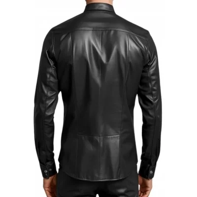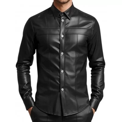 Chemise homme en cuir d'agneau stretch noir fermeture par pressions métal modèle Viginien