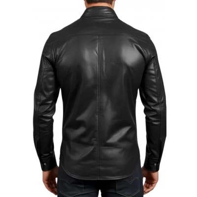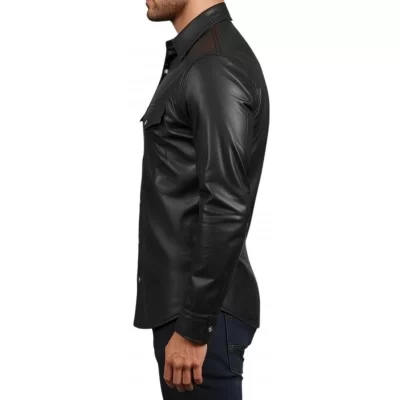 Chemise homme en cuir d'agneau stretch noir fermeture par pressions métal modèle Raloule